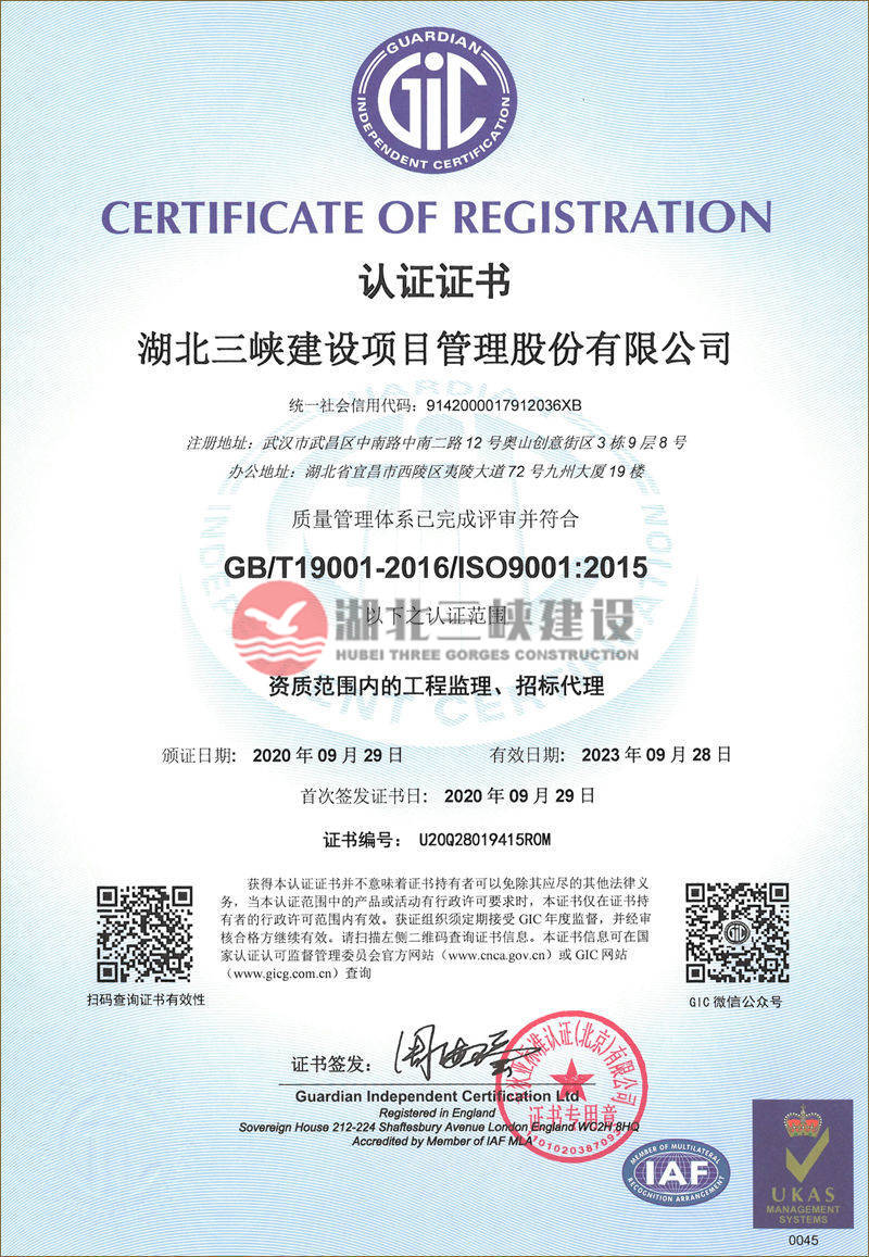 质量管理体系认证证书