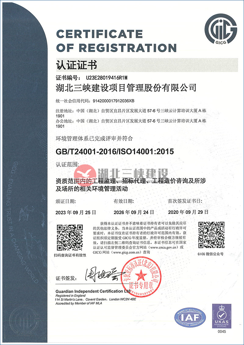 环境管理体系证书