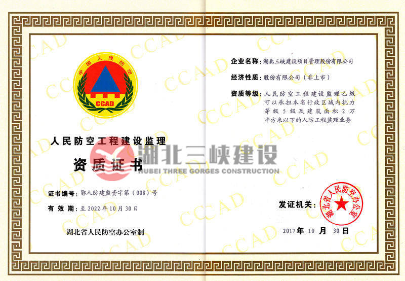 人民防空工程建设监理资质证书