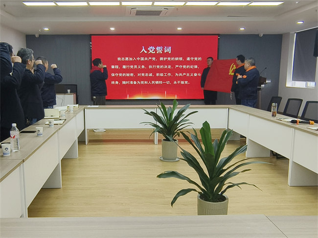 学习结束后,举行了新发展预备党员陈恭铭同志的入党宣誓仪式。黄崇明同志宣读了上级党委的审批意见,支部组织委员张玉萍同志为陈恭铭同志佩戴了党徽,全体党员在支部书记盛斌同志的领读下,面向鲜红党旗庄严宣誓,再次重温了入党誓词。预备党员陈恭铭同志表示要牢记入党誓词,不断提高党性觉悟和业务水平,以更加饱满的热情、更加昂扬的斗志,争取在公司转型发展中取得更大成绩。