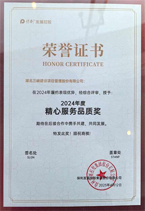 | ——太阳成集团tyc33455ccwww荣获保利发展控股集团“2024年度精心服务品质奖” |