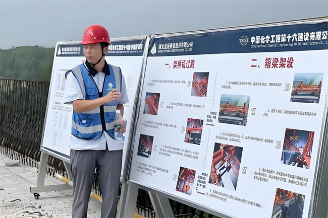 活动以"人人讲安全、个个会应急—查找身边安全隐患"为主题,分为现场观摩活动和专题座谈会两个环节。在现场观摩中,公司副总经理、峡州大道三期项目总监秦晋江引导大家共同观摩了现浇箱梁(挂蓝、现浇支架)及预制箱梁(架桥机吊装)等两个项目关键性施工作业点,与会人员在实地观摩学习的同时,就核心施工工艺技术要求、质量安全监理检查控制措施及系统性风险管控等进行了深入互动交流。